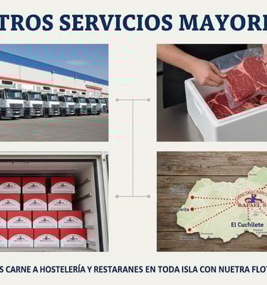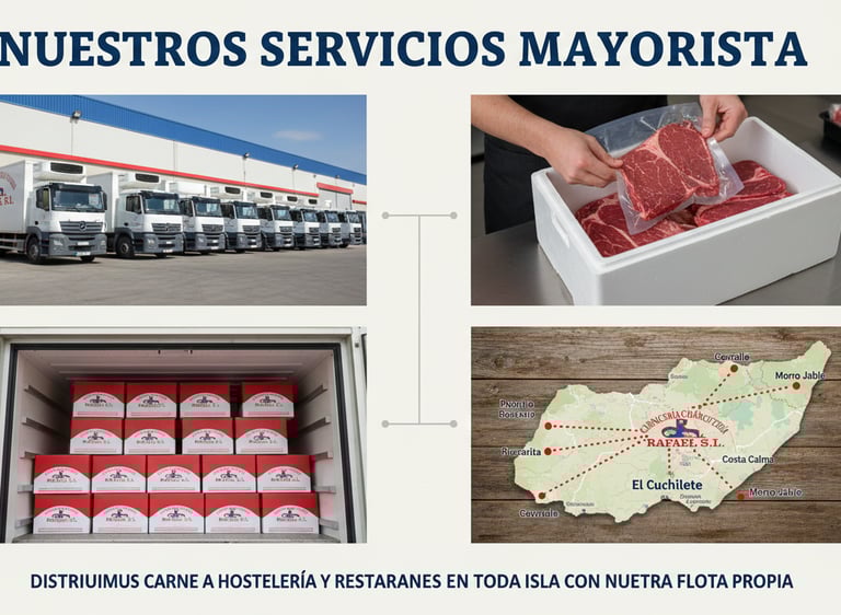 Distribuimos carne fresca a hoteles y restaurantes en toda la isla con nuestra flota propia.